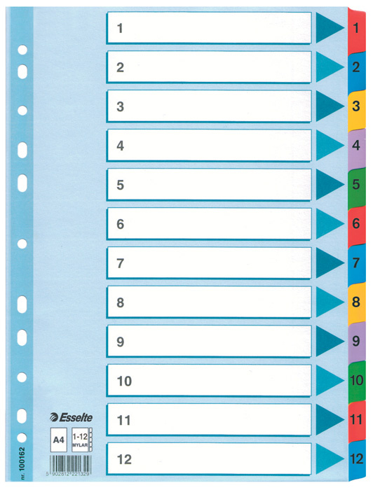 rozlišovače vyrobené z kvalitního zesíleného kartonu, barevné rozlišovací plastové okraje prodlužují životnost, plastem vystužená multiperforace umožňuje univerzální použití, popisovatelný titulní list s barevným potiskem