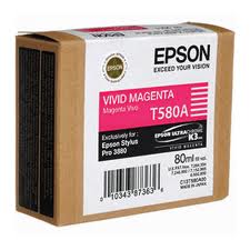 Epson purpurový (vivid magenta) inkoust, T580A00, objem tiskové náplně 80ml, pro barevnou inkoustovou tiskárnu / kopírku Epson Stylus Pro 3800