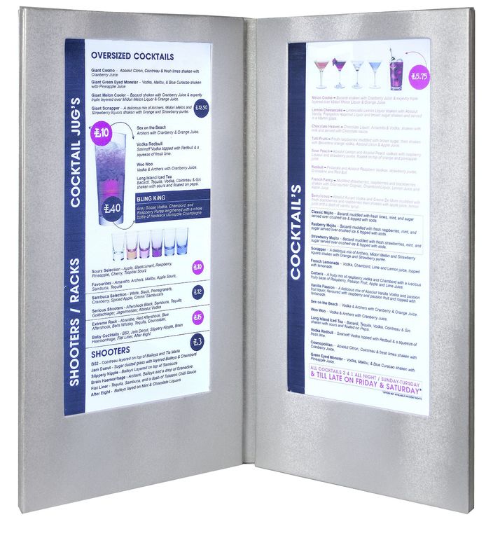 Dopřejte svým hostům úžasnou podívanou na Vaši nabídku umístěnou na podsvícené ploše luxusních LED jídelníčků s koženými deskami. LED jídelní lístky je výhodné použít zejména v tmavších prostorách, kde jejich efekt díky moderní technologii je nejvýraznější. Jídelníček se automaticky rozsvítí při otevření. Vestavěné baterie s možností dobíjení přes USB konektor zajišťují až 1 týden provozu na jedno nabití. Vlastní nabídka se tiskne na fólie určené buď pro laserové nebo inkoustové tiskárny. Lze vkládat i nabídku vytištěnou na papíru do gramáže A4 80g/m2.