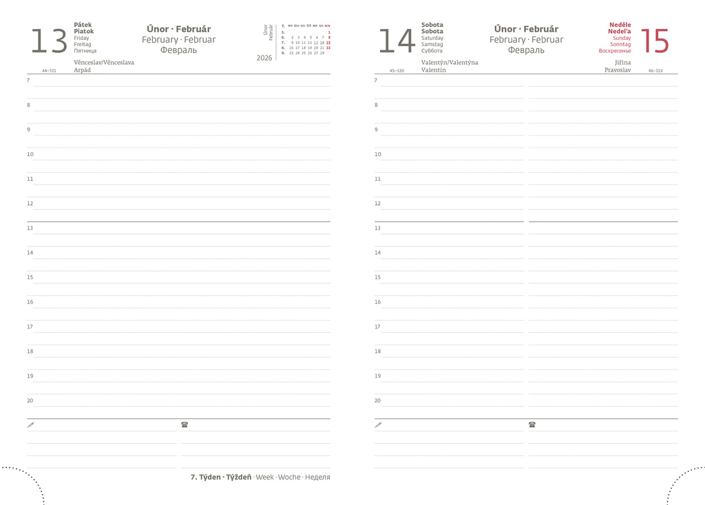 originální designové diáře se zajímavými motivy, které jsou upravy speciální laminací s hevábným efektem, díky čemuž jsou velmi příjemné na dotek, doplněné gumičkou, mezinárodní svátky, plánovací kalendář, osobní údaje, měsíční přehled, adresář, mapa Evropy a České a Slovenské republiky