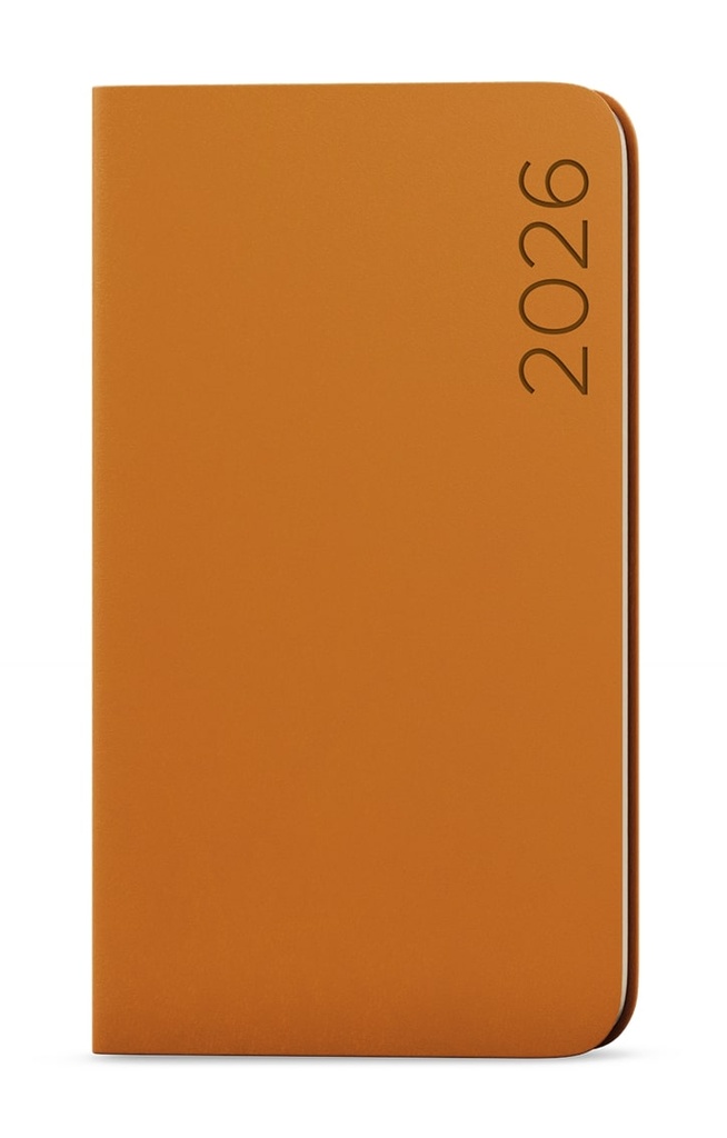 jemný materiál (imitace semiše), jednostranná výplň desek, ražba roku, rovný hřbet, zakulacené rohy, české a slovenské jmenné kalendárium,