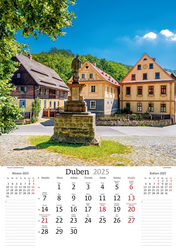 české tříměsíční jmenné kalendárium, formát 31,5 x 45