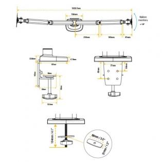 držák pro 2 monitoryusnadňuje organizaci pracovního prostoruminimalistický, stylový design s vestavěným systémem uspořádání šňůr a kabelůtechnologie plynových pružin umožňuje snadné nastavení monitoru pro práci a sdílení obrazovkymax. 360 stupňů otáčení obrazovky, max. sklon (pravý, levý) 180 stupňůmax. úhel naklápění + / - 90 stupňůmin. - max. výška 140-406 mm (nastavení v rozsahu 266 mm)max. dosah 538 mmstahování ramene 102 mmmontážní systém VESA, splňuje normy VESA 75 × 75 a 100 × 100snadná montáž ke stolu pomocí svorky nebo průvlakumateriál kovmax. hmotnost zatížení jednoho ramene je 8 kg, dvou ramen 16 kg doporučeno Mezinárodní akademií pro ergonomické produkty FIRA™
