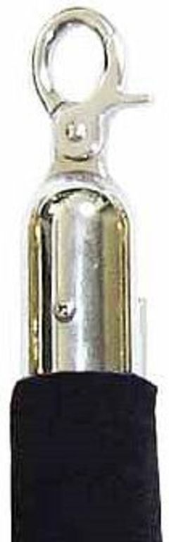 Koncovka s karabinou k oddělovacím lanům zábranových systémů, průměr 28 mm, stříbrná barva. Umožňuje výrobu ozdobného provazu jakékoliv délky. Připevňuje se s pomocí šroubků